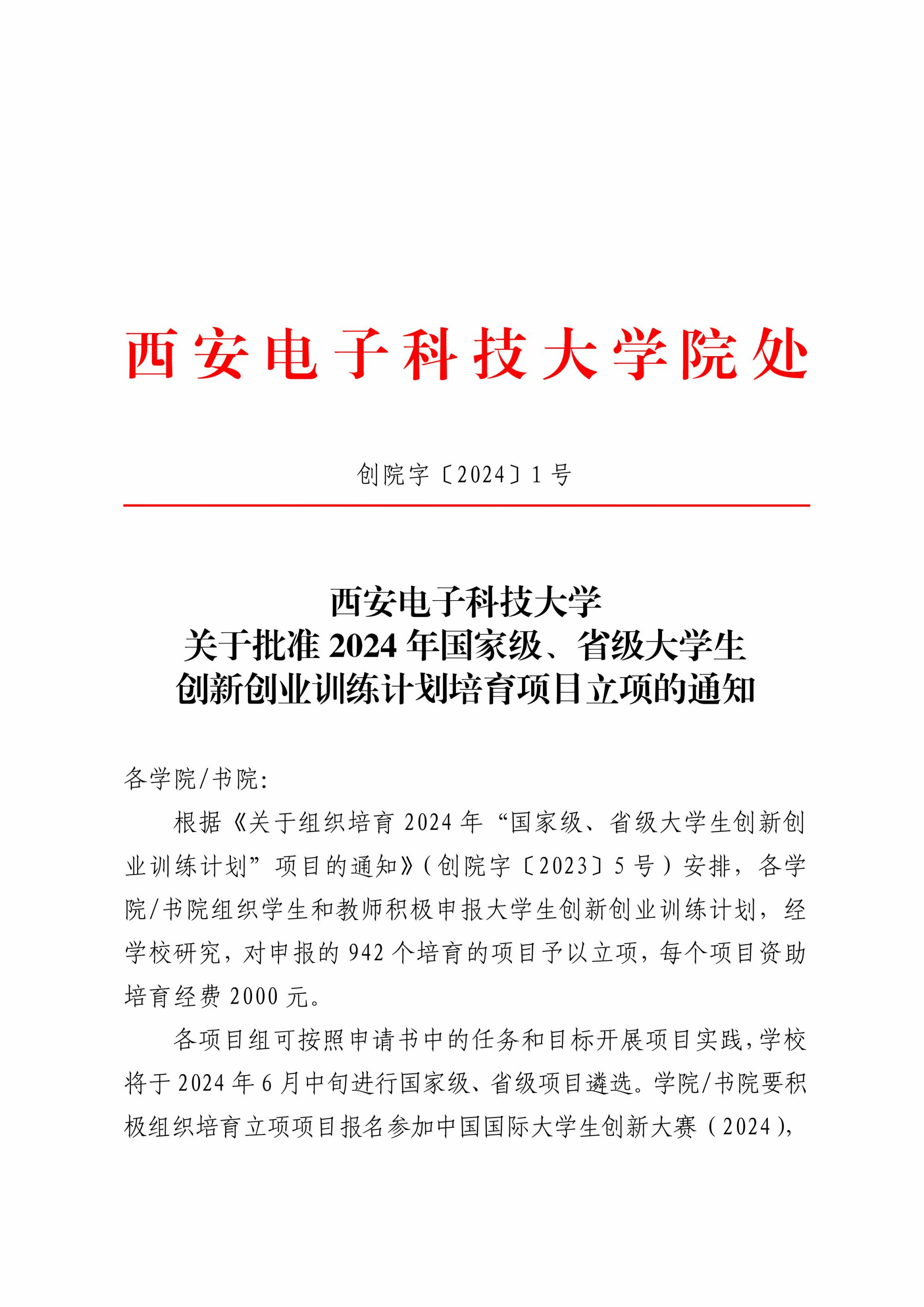 英国365集团关于批准2024年国家级、省级老员工创新创业训练计划培育项目立项的通知