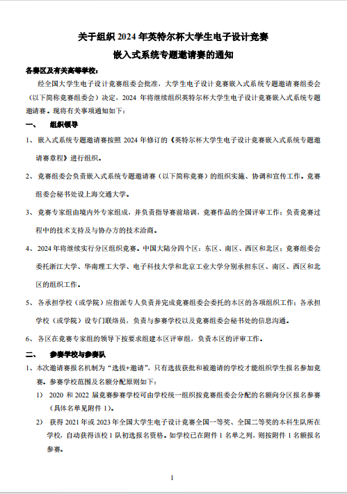 关于组织2024年英特尔杯老员工电子设计竞赛嵌入式系统专题邀请赛的通知
