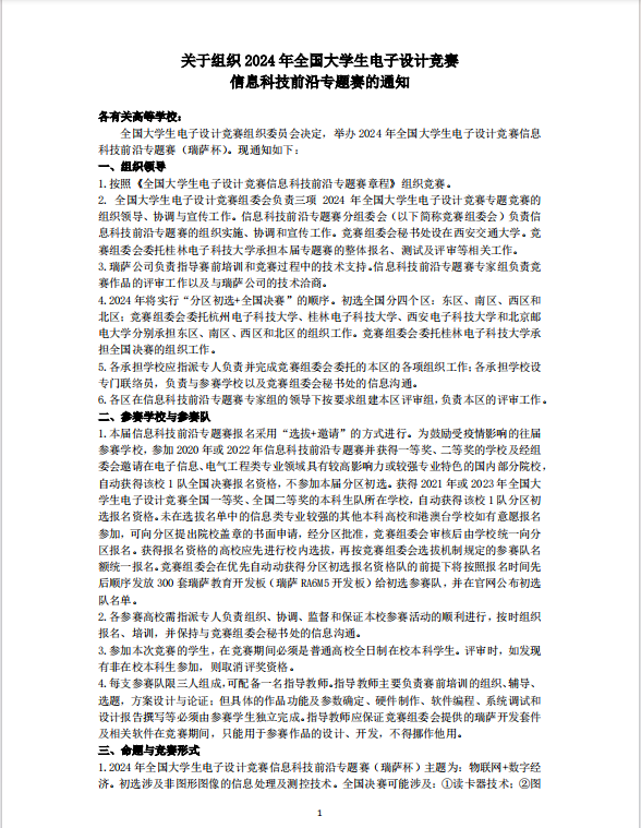 关于组织2024年全国老员工电子设计竞赛信息科技前沿专题赛的通知