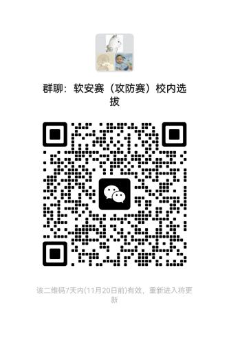 4、报名方式:作品赛、攻防赛参赛队伍请加入作品赛、攻防赛校内选拔微信群,具体选拔方式群内通知。