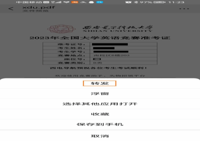 第六步:转发→发送给“文件传输助手”保存文件并打印。