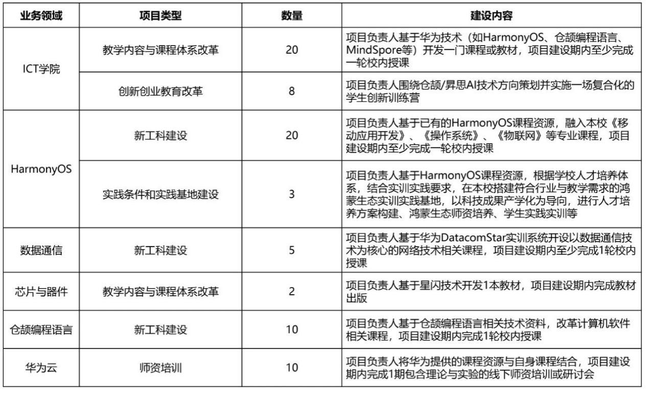华为公司在高教司指导下开展产学合作协同育人项目,2025年第二批项目拟在HarmonyOS、数据通信、芯片与器件、仓颉编程语言、华为云等数字技术应用创新领域与高校开展紧密合作,培养创新型和应用型人才。如下为本批次拟立项项目信息: