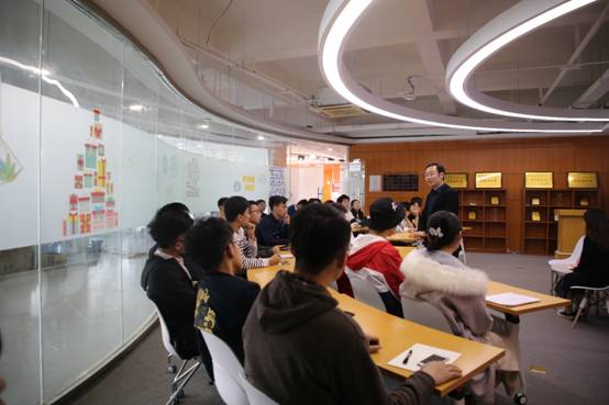 座谈会前,在星火众创空间会议室,蒋里与公司员工创新创业团队进行了交流。他结合自身经历向同学们分享了自己在斯坦福大学求学的经历,他讲到,不同文化背景下的学习帮助自己养成了多角度深层次看问题的习惯和思维。在回答员工针对人工智能技术相关的问题中,他以个性化智能推荐算法为例,探讨了人工智能技术的前景和局限,并提醒员工要保持包容开放的心态面对不同领域的知识。