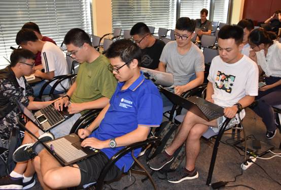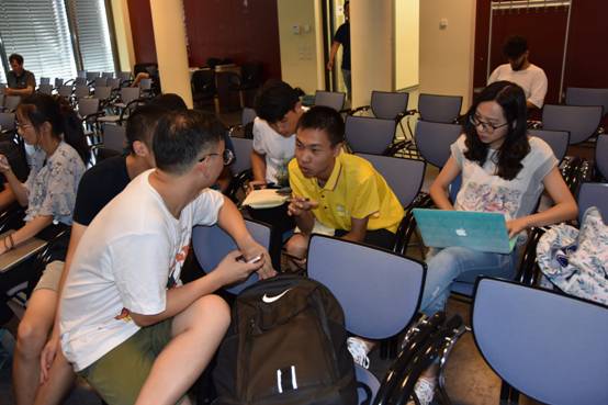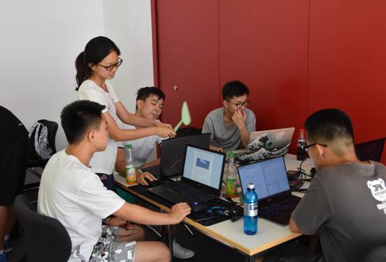 此次游学员工中涵盖了大一到大三三个年级,员工基础参差不齐。“贪心算法在对问题求解时,总是做出在当前看来是最好的选择。”大三员工刘志彬主动担当起课外辅导“老师”,与助教一起为低年级员工讲述课程中的原理和算法。下课之后员工自动分成若干小组按照教师授课内容,在黑板前面讨论、复习,总结学习心得,每天上午12:00结束课程,员工总是讨论到13:00才去吃饭。