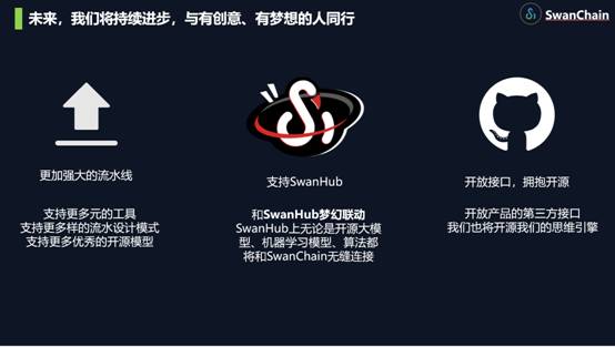 工作室(联合)创始人陈少宏、林泽毅、韩翔宇分别对“SwanHub”“SwanChain”“妙问”三款产品进行推介与演示。陈少宏表示,工作室发展到现在,始终践行着“从0到1”创新的初心,形成了“汇聚敢想敢做人才、锤炼敢创会创能力”的团队文化,经历不断探索研发和产品迭代最终走上今天的舞台,实现了团队的共同成长。