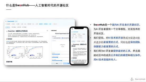 (1)SwanHub是一款新兴的人工智能模型一站式协同开发、开源共享、可视化展示平台,针对当前人工智能模型复现难、部署难、管理难的问题,提供了一系列创新性的解决方案和便利工具。在这里,AI研究者和从业者不仅可以获得丰富的开源模型和工具资源,还能够享受到协同开发的便捷与高效。SwanHub于2023年3月上线内测,累计开源包含计算机视觉、自然语言处理、音频识别等类别的上百个开源模型与可视化Demo。社区于8月成为AWS(亚马逊云)的“云创计划”合作伙伴。