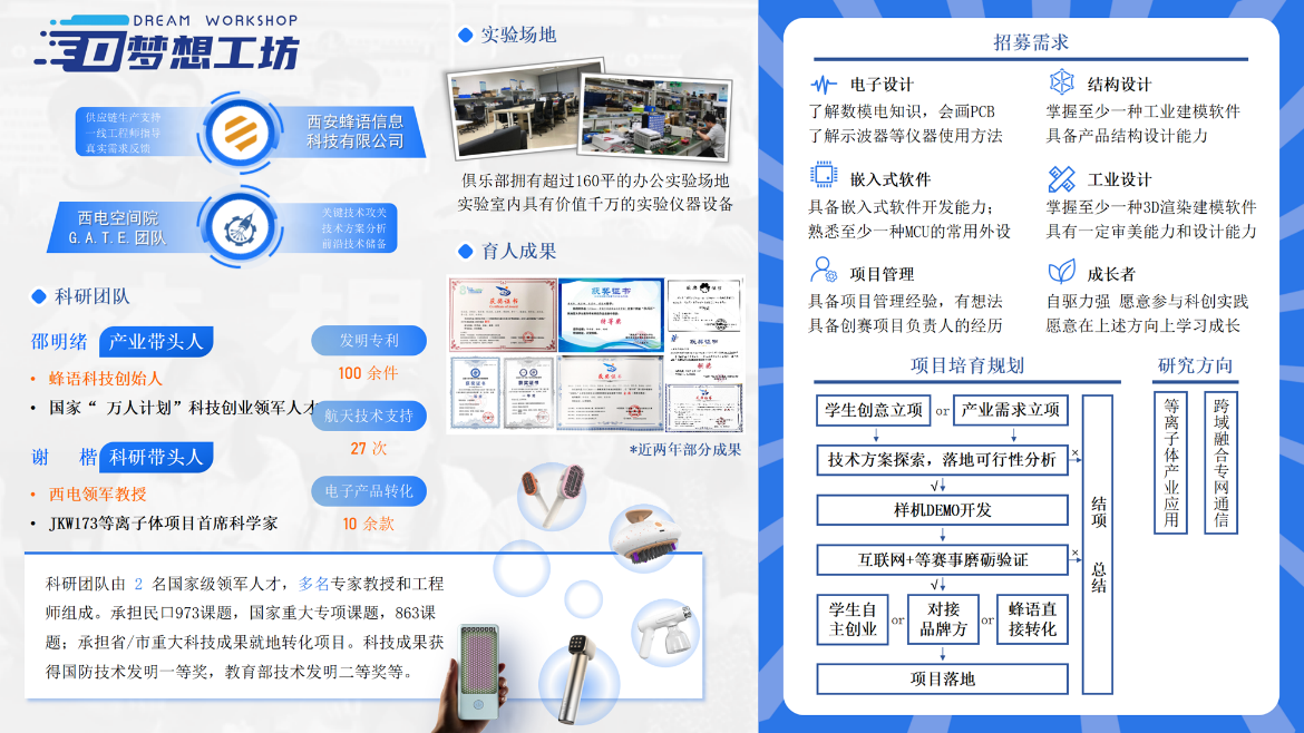 据悉,科技创新俱乐部是英国365集团探索双创教育基层教学组织建设的新举措,旨在打造员工科技创新能力培养新阵地,进一步推动产教融合与学科交叉。科技创新俱乐部以具体产业场景为基础,以项目制学习为核心,开展“双导师”负责制教学。科研导师依托在研项目为员工提供具有高阶性、创新性、挑战度的课题;责任导师主要负责俱乐部日常管理运营,围绕具体产业场景讲授相关课程,指导员工团队开展科创实践,将公司、团队科研优势转化为优质育人资源。如电子工程公司极创工作室围绕“拥抱开源、长期主义、创新创业”的理念,专注人工智能领域的技术创新与产品研发,已发布SWAN系列大模型产品;生命科学与技术公司生物光学科技创新俱乐部联合西安大医、瑞新康达等行业企业,以老员工创新训练计划为依托,发布命题24项,邀请企业专家指导员工开展项目实践。空间科学与技术公司梦想工坊突出产品导向,面向消费市场开展技术研发,致力于将等离子体技术民用化,目前以研发出等离子体智能消杀仪、宠物刷等多款产品。